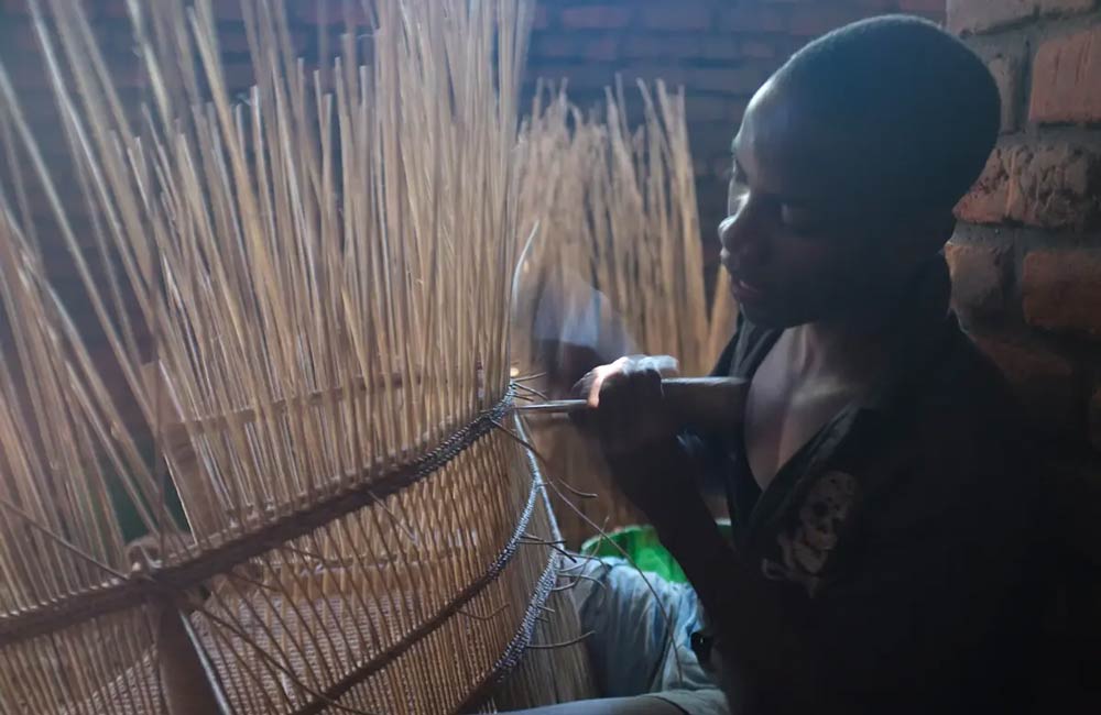 Innovative products are created: tapestries meticulously handwoven by the first basket weavers in Malawi, abstract masks woven as wall decorations, and handmade chairs and sofas crafted from bamboo rubber and rattan.