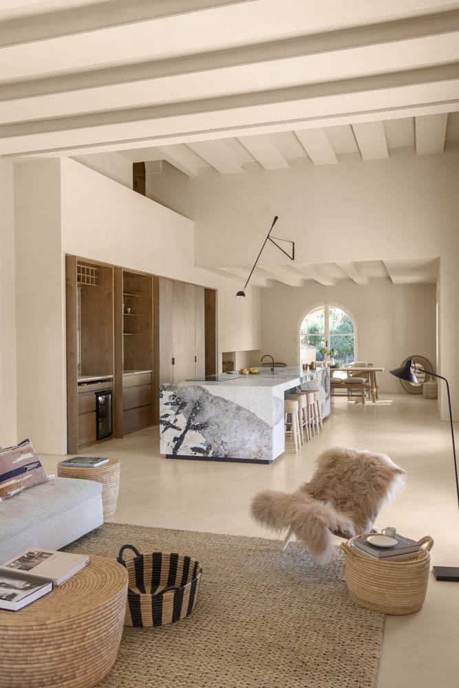 At the heart of the renovation project is the kitchen—an open space connected to the living area. It is the true soul of the home, the result of a delicate balance between functionality, beauty, and personality. Scenes of everyday life unfold before your eyes: the warmth of hospitality, the sound of shared laughter, the quiet of reflection, and a moment to oneself. In the kitchen, preparing meals is an ancestral ritual—intimate and meaningful—carried out in anticipation of sharing with friends and loved ones. The spaces we live in shape how we see life, how we feel, and how we act. Likewise, the furniture and accessories that fill them speak of who we are and reflect our essence.